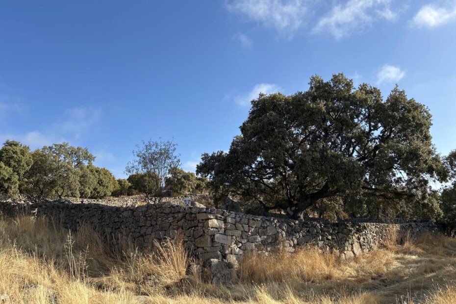 Iniciamos la ruta desde el monumento a La Caldereta, saliendo de Hoyo por la calle Frontera y por el camino de Perdigueros. En el cruce de caminos de El Carrascal seguimos recto, dejando a nuestra derecha la valla de la finca de la tinaja para encontrarnos con el colmenar del sevillano, Poco después nos detenemos para contemplar a nuestra derecha la encina de la tinaja de majestuosas dimensiones.