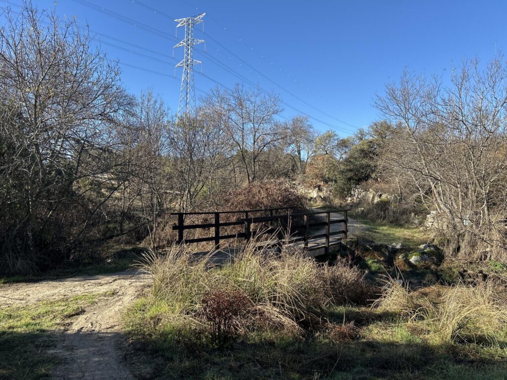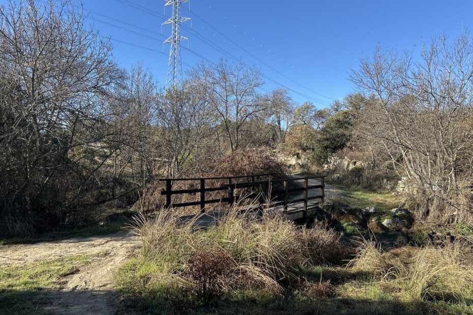 Continuamos por el cordel, atravesando el arroyo de Valgrande y luego por la pista ancha que nos lleva a la entrada de la Academia de Ingenieros del Ejército.