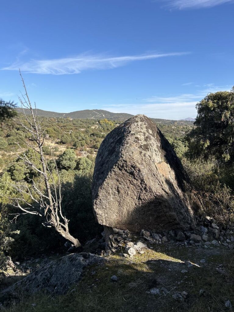 Continuamos por la pista ancha que pasa cerca de la carretera y nos lleva hasta la urbanización Las Colinas. A la entrada de la misma tomamos un camino en descenso que nos lleva de nuevo al Arroyo de Trofa. Cruzado éste, continuamos ahora en ascenso hasta llegar al camino de El Pardo, en el paraje del Cierro Trofa. Tomamos este camino girando la izquierda para dejarlo más adelante girando la derecha en una pequeña vaguada que nos lleva a la fuente y pilón de Tomasín. A partir de aquí continuamos por un estrecho sendero que, siguiendo la dirección del cordel, cruza el camino de La Solana y nos lleva zigzagueando al Covacho de la Umbría, lugar idóneo para hacer un pequeño descanso.